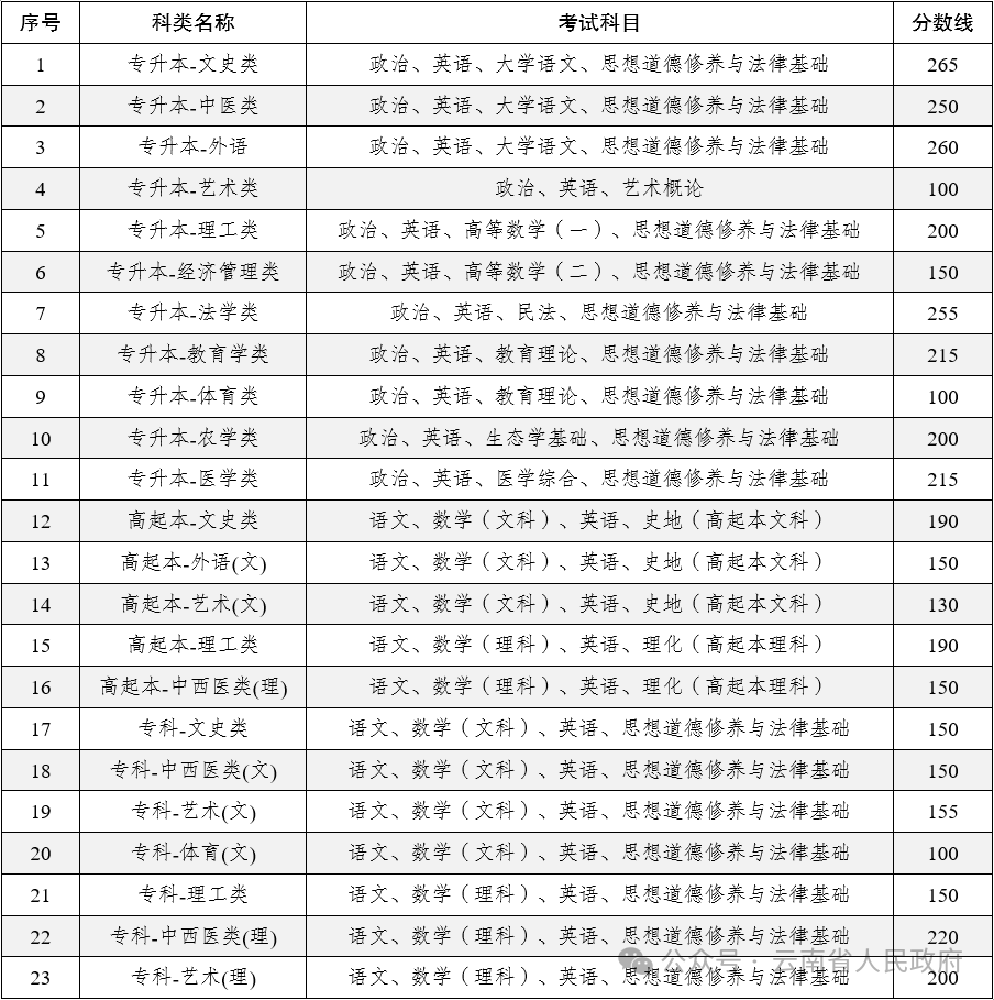 - 云南省2025年成人高考成绩、最低录取分数线公布