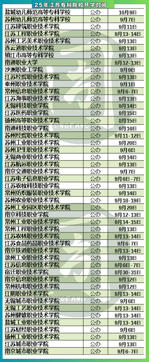 - 江苏省专科院校2025年秋季新生开学时间汇总